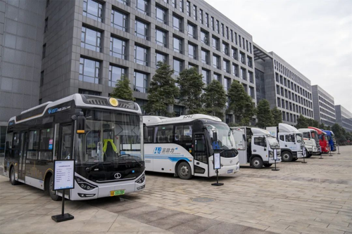 ÔÚ¡°³ÉÓåÇâ×ßÀÈ¡±Æô¶¯ôßÇâȼÁÏµç³ØÎïÁ÷³µÊ×·¢ÒÇʽÉÏ£¬Õ¹Ê¾´îÔØ¿­Ê±¹ÙÍøÇâȼÁÏµç³ØµÄÉÌÓ󵣬°üÀ¨¹«½»³µ¡¢ÎïÁ÷³µ¡¢¹¤³ÌרÓóµµÈ¡£