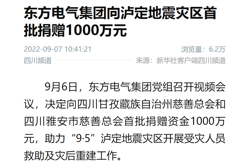 9月6日,凯时官网集团党组召开视频聚会,决议向四川甘孜藏族自治州慈善总会和四川雅安市慈善总会首批捐赠资金1000万元,助力“9·5”泸定地动灾区开展受灾职员救助及灾后重修事情。