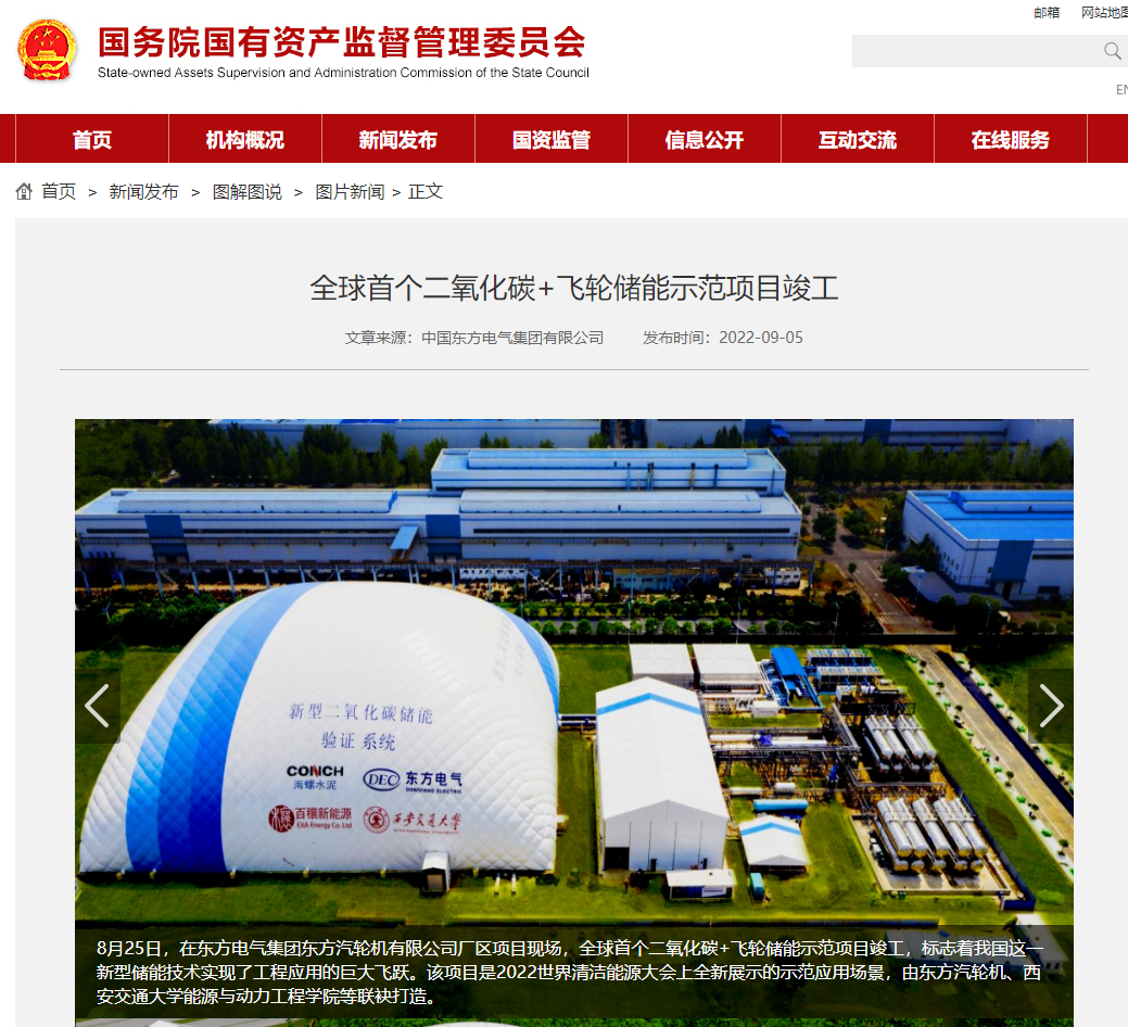 [国资委网站]全球首个二氧化碳+飞轮储能树模项目完工