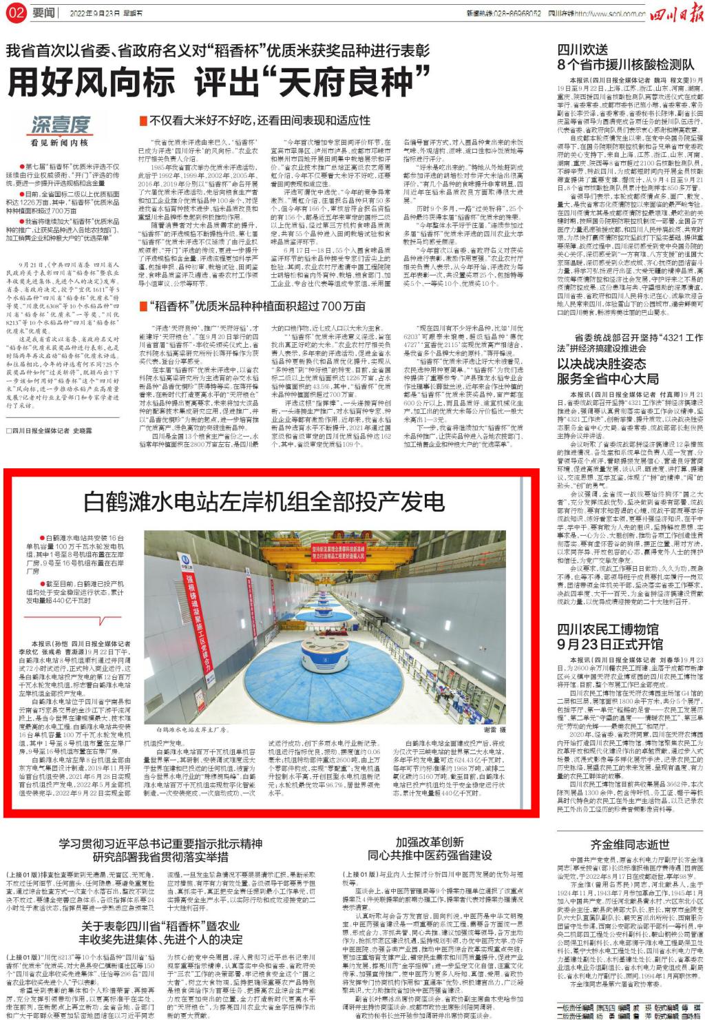 [四川日报]白鹤滩水电站左岸机组所有投产发电