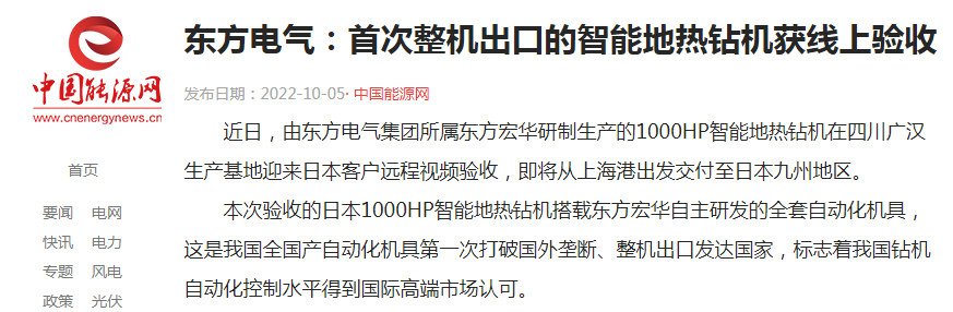 ³ö¿ÚÈÕ±¾µÄ1000HPÖÇÄܵØÈÈ×ê»úµÄÀÖ³ÉÑéÊÕ£¬½«´øÀ´ÓÅÒìµÄÐÐÒµÊ÷ģЧӦ£¬¶Ô¶«·½ºê»ª½øÒ»²½Ìá¸ßÍâÑóµØÈÈ×ê¾®×°±¸ÐÐÒµ¾ºÕùÁ¦£¬Íƶ¯¿­Ê±¹ÙÍø¼¯ÍÅÈ«ÇòµØÈȹ¤Òµ½á¹¹½á¹¹»¯¡¢×ÝÉÉú³¤¾ßÓÐÖ÷ÒªÒâÒå¡£