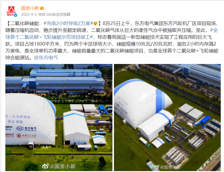 [国资小新]二氧化碳储能:#充电2小时存电2万度#