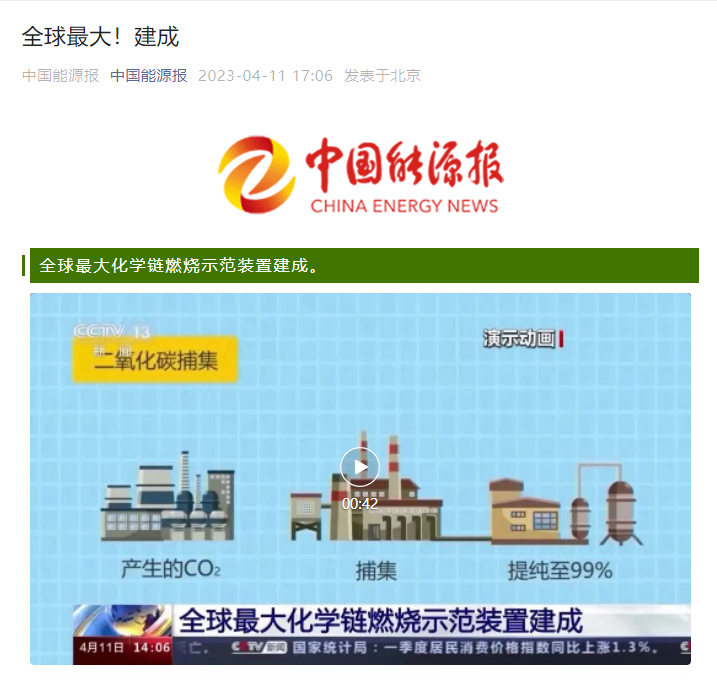 ¿Ê±¹ÙÍøÈÕǰÐû²¼ÐÂÎÅ£¬È«Çò×î´óµÄ»¯Ñ§Á´È¼ÉÕÊ÷Ä£×°Öý¨³É£¬Óë¹Å°å̼²¶¼¯ÊÖÒÕÏà±È£¬ÕâÌ××°Öò»µ«ÌṩÁËеÄÊÖÒÕõè¾¶£¬»¹½µµÍÁË2/3µÄ±¾Ç®¡£