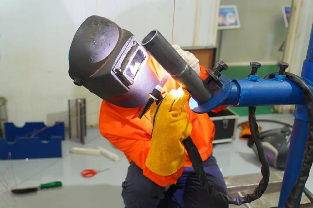 µçº¸¹¤Ñ¡ÊÖÕýÔÚ¾ÙÐк¸½Ó×÷Òµ£¬¸ÃÈüÏîÄÚÈݰüÀ¨ÁËÕû¸ö×°±¸ÖÆÔ캸½Ó×÷ÒµÖÐÊÖ¹¤º¸½Ó¡¢º¸Ìõµç»¡º¸½Ó¡¢ÎÙ¼«ë²»¡º¸½Ó¡¢ÆøÌå±£»¤º¸¶àÖÖº¸½ÓÒªÁìºÍº¸½ÓλÖá£