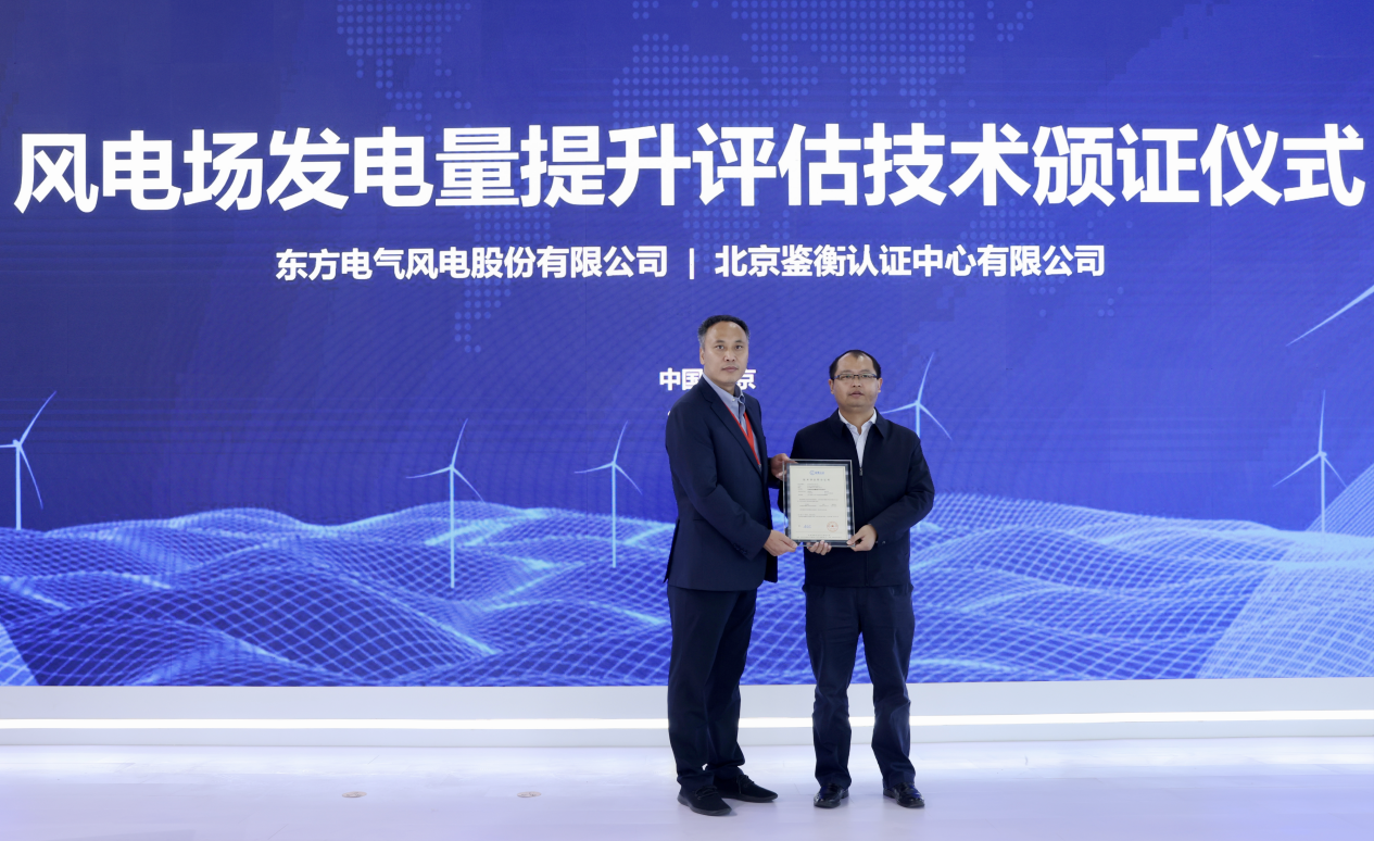 Õ¹»áʱ´ú£¬±±¾©¼øºâÈÏÖ¤ÖÐÐÄÏò¶«·½·çµç½ÒÏþ¡¶·çµç³¡·¢µçÁ¿ÌáÉýÆÀ¹ÀÊÖÒÕ¡·ÈÏÖ¤Ö¤Êé¡£