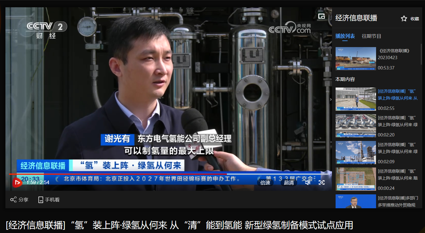 [央视经济信息联播]“氢”装上阵·绿氢从何来 从“清”能到氢能 新型绿氢制备模式试点应用