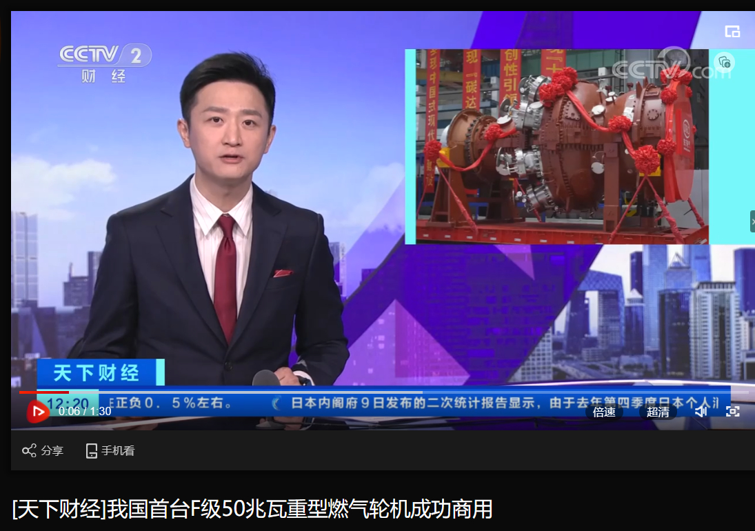 [央视天下财经]我国首台F级50兆瓦重型燃气轮机乐成商用
