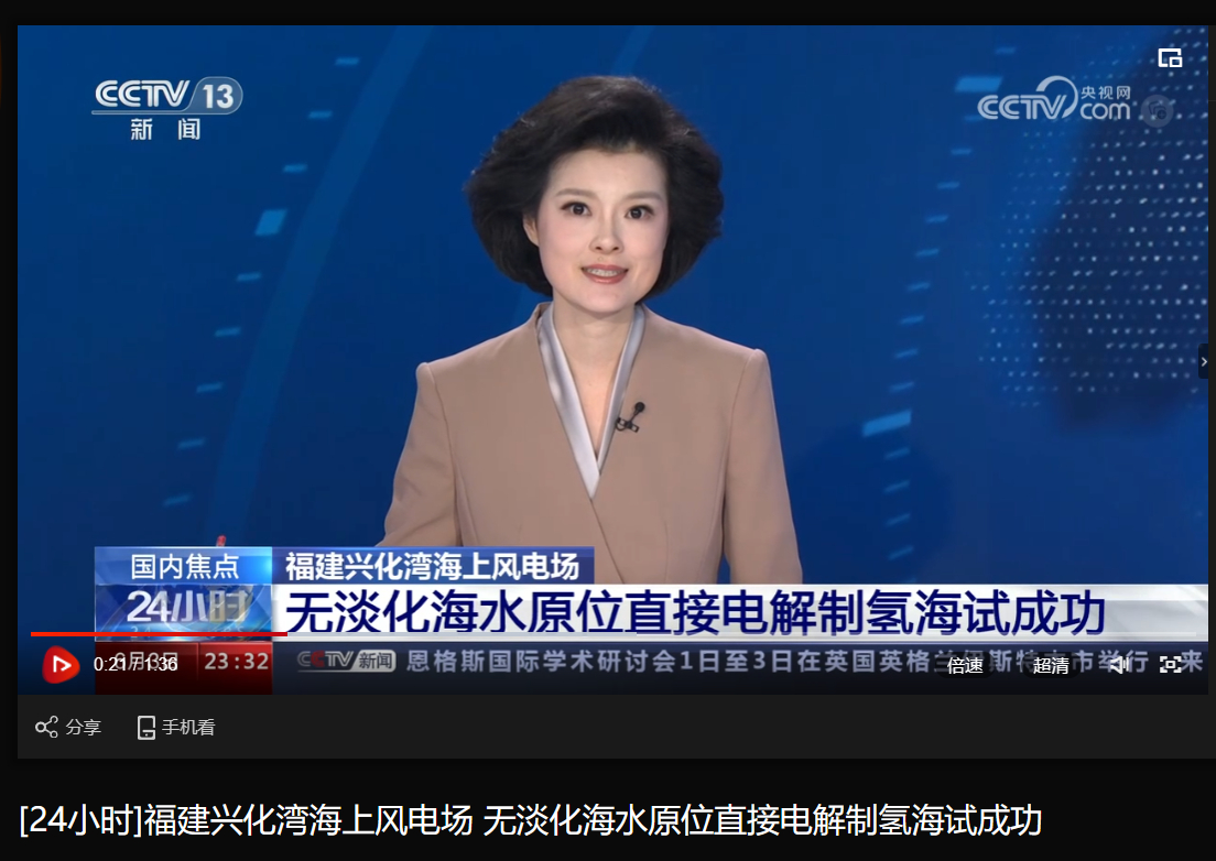 [ÑëÊÓ24Сʱ]¸£½¨ÐË»¯Í庣ÓÅÊÆµç³¡ ÎÞµ­»¯º£Ë®Ô­Î»Ö±½Óµç½âÖÆÇ⺣ÊÔÀÖ³É