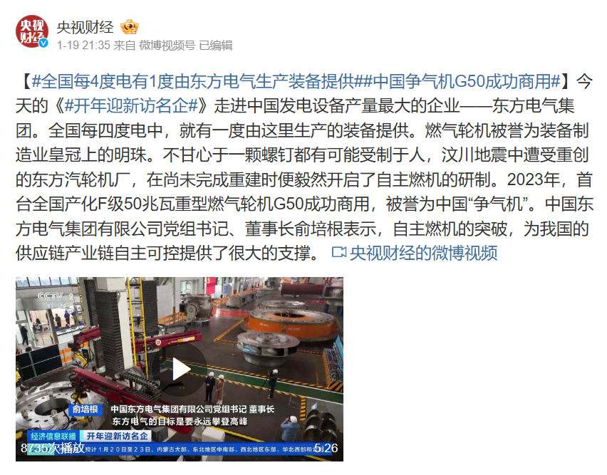 【#天下每4度电有1度由凯时官网生产装备提供##中国争气机G50乐成商用#】今天的《#开年迎新访名企#》走进中国发电装备产量最大的企业——凯时官网集团。天下每四度电中,就有一度由这里生产的装备提供。燃气轮机被誉为装备制造业皇冠上的明珠。不宁愿于一颗螺钉都有可能受制于人,汶川地动中遭受重创的东方汽轮机厂,在尚未完成重修时便毅然开启了自主燃机的研制。2023年,首台天下产化F级50兆瓦重型燃气轮机G50乐成商用,被誉为中国“争气机”。凯时官网党组书记、董事长俞培根体现,自主燃机的突破,为我国的供应链工业链自主可控提供了很大的支持。