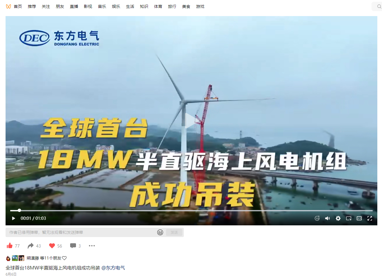 [国资小新]全球首台18MW半直驱海优势电机组乐成吊装