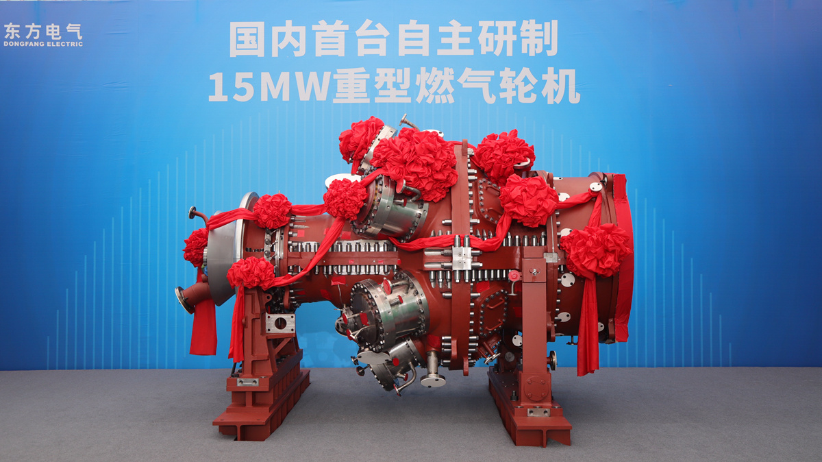 海内首台自主研制15兆瓦重型燃气轮机(代号:G15)在德阳正式下线。(王攀 摄)