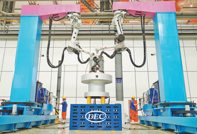 2022年叶片加工“黑灯产线”建成,叶片质量及格率达99%,人均效率提升650%;在焊接数字化车间,依托智能机械人,一次焊接及格率靠近100%。