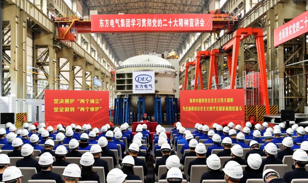 俞培根要求,对党的二十大报告和党章作出的关于国资国企刷新生长和党的建设的重大安排,要认真研究、深入思索、系统掌握、深化落实。他从“七个深刻掌握”对全集团团结现实深入贯彻落实党的二十大精神作出系统安排,特殊是对东方电机在加速建设天下一流企业、提升科技立异支持作用、加速绿色低碳转型生长、释放企业刷新活力动力、以高质量党建引领包管高质量生长等方面提出明确要求。