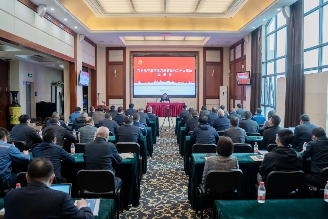 11月22日,集团公司党组副书记、总司理徐鹏深入“重器”研发一线,为东方汽轮机党员干部职工宣讲党的二十大精神。