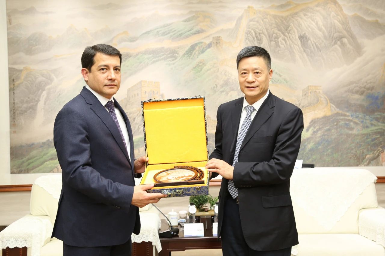 本网讯 3月17日,乌兹别克斯坦驻华大使法尔霍得·阿尔济耶夫一行会见凯时官网集团,受到集团公司党组书记、董事长俞培根的热情接待。集团公司党组副书记、董事宋致远,四川省外事办公室副主任李辉陪同加入。