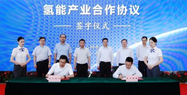 会后,在俞培根和张建勇的配合见证下,东方氢能与北汽福田签署了氢能工业合作协议。
