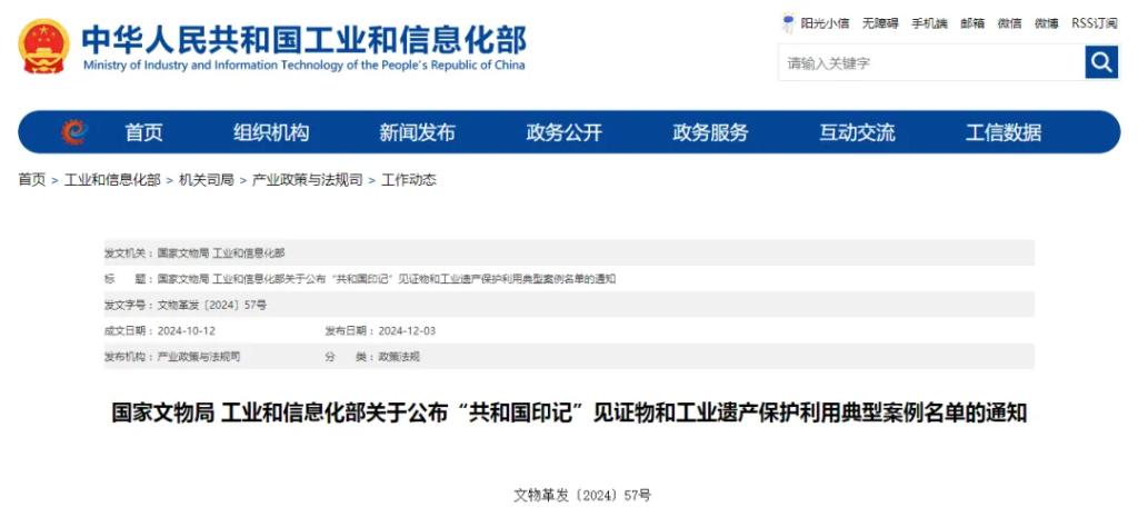 ¿ËÈÕ£¬¹ú¼ÒÎÄÎï¾Ö¡¢¹¤ÒµºÍÐÅÏ¢»¯²¿Ðû²¼¡°¹²ºÍ¹úÓ¡¼Ç¡±¼ûÖ¤ÎïºÍ¹¤ÒµÒŲú±£»¤Ê¹Óõ䷶°¸ÀýÃûµ¥£¬¿Ê±¹ÙÍø¼¯ÍÅ¡°»ªÁúÒ»ºÅ¡±ZH-65 ÐÍÕôÆû±¬·¢Æ÷¡¢µÚһ̨300Õ×Í߯ûÂÖ»úµÍѹת×ÓÈëÑ¡¡°¹²ºÍ¹úÓ¡¼£¡±¼ûÖ¤Î¡°¶«µçÓ¡¼£¡±¹¤ÒµÀúÊ·ÎÄ»¯Ô°±£»¤Ê¹ÓÃÈëÑ¡¹¤ÒµÒŲú±£»¤Ê¹Óõ䷶°¸Àý¡£
